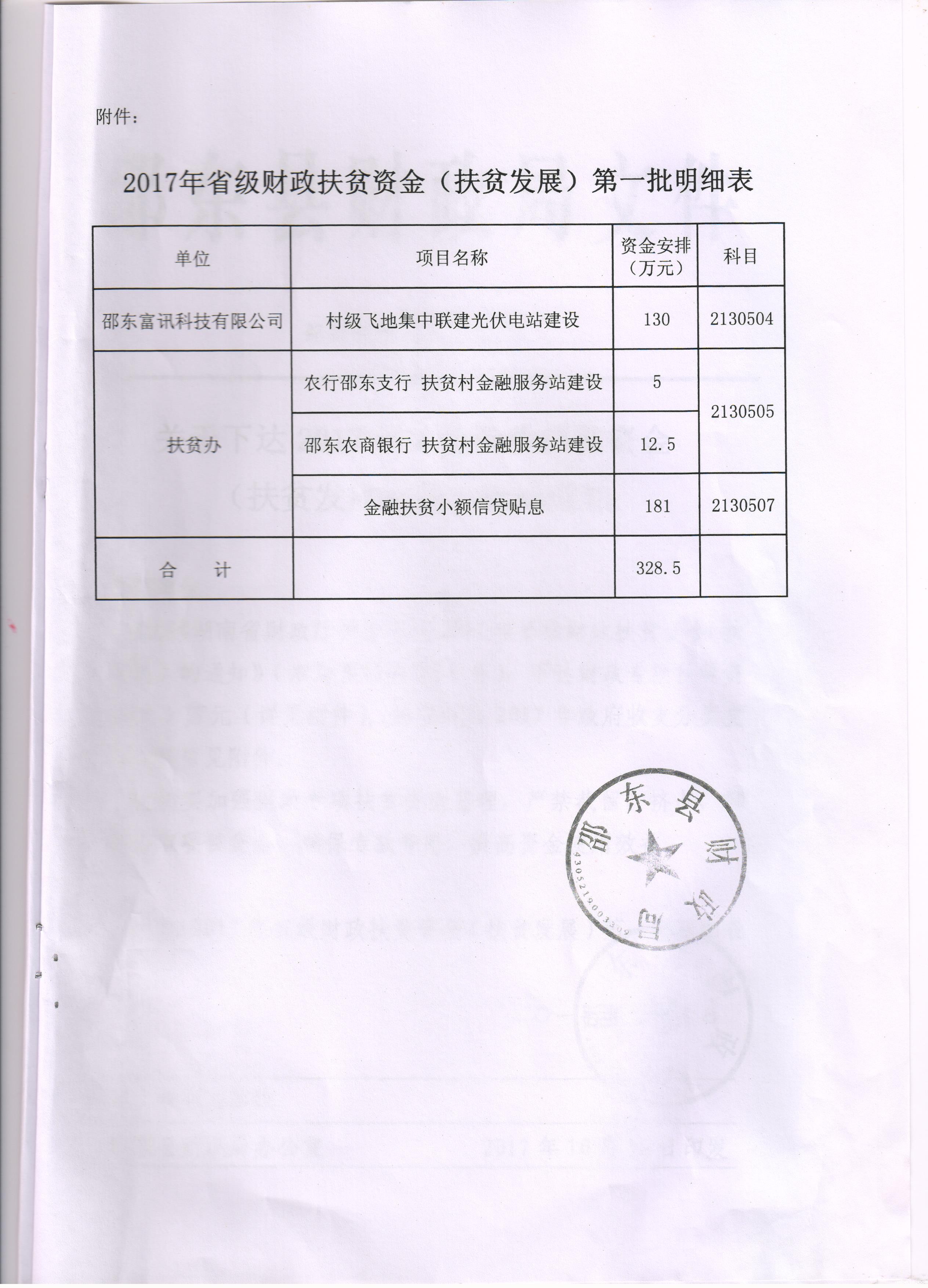 关于下达2017年省级财政扶贫资金(扶贫发展)第一批的通知